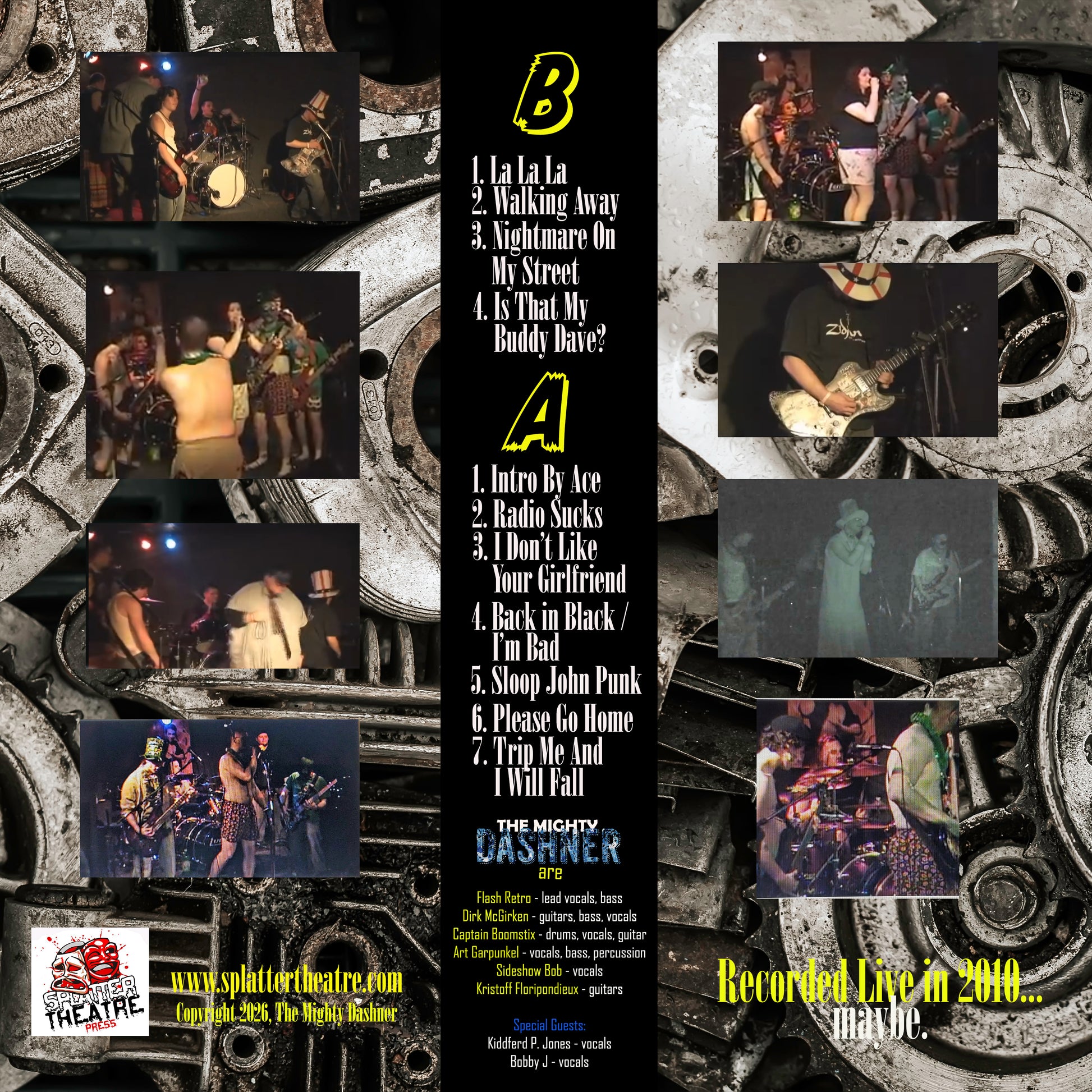 The Mighty Dashner have returned! For the first time! This groundbreaking punk, funk, rock group has to be seen, and heard, to be believed! This album was recorded live at The Machine Shop in Flint, MI in 2010 and, by all accounts, they were banned after the show.